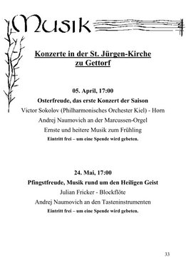 Gottesdienste & Veranstaltungen in Gettorf im Gemeindehaus vom 05.01.2026 – 28.03.2026