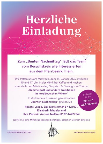 Gottesdienste & Veranstaltungen in Gettorf im Gemeindehaus vom 05.01.2026 – 28.03.2026